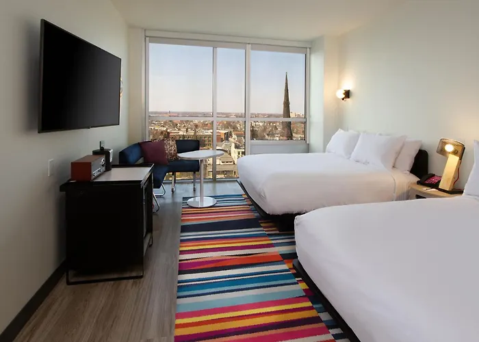 Offering an indoor pool, Hyatt Regency Buffalo hotel is situated in the downtown district of Buffalo, 19 minutes' walk from Erie Basin Marina Gardens. Featuring 40 rooms with views of the city, this 4-star hotel is 4.8 km from Delaware Park.